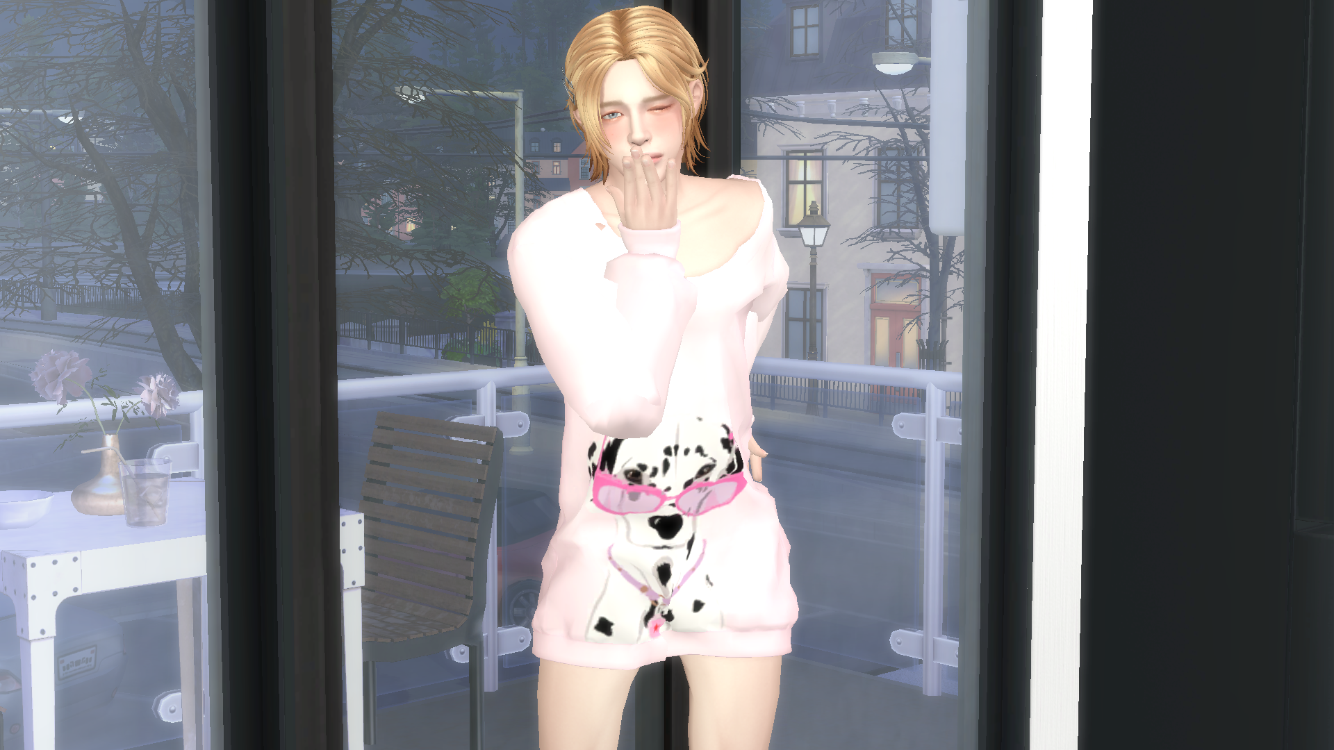 自シムに体は男性、心は乙女のトランスジェンダーがいるため可愛いアイテムが欲しくてSaruin氏のCCリカラーさせていただきました。男でも可愛いが着れます💗